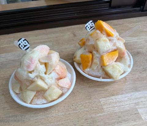 メニューを見てどれも食べたくて目移りしましたが、私は絶対に桃!と決めていたので、旦那には桃とマンゴーのかき氷にしてもらいました(笑)