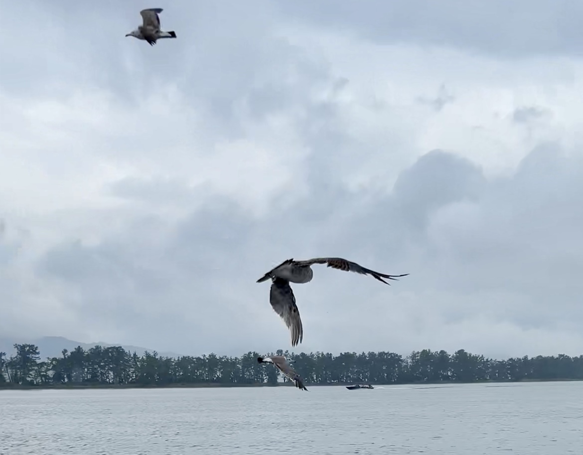 船内で購入したえびせんでカモメのエサやりをしたのが楽しかった。カモメはクチバシでキャッチ。トンビは足でキャッチするんですね。すぐ近くまで飛んでくる鳥たちと童心にかえって戯れました。