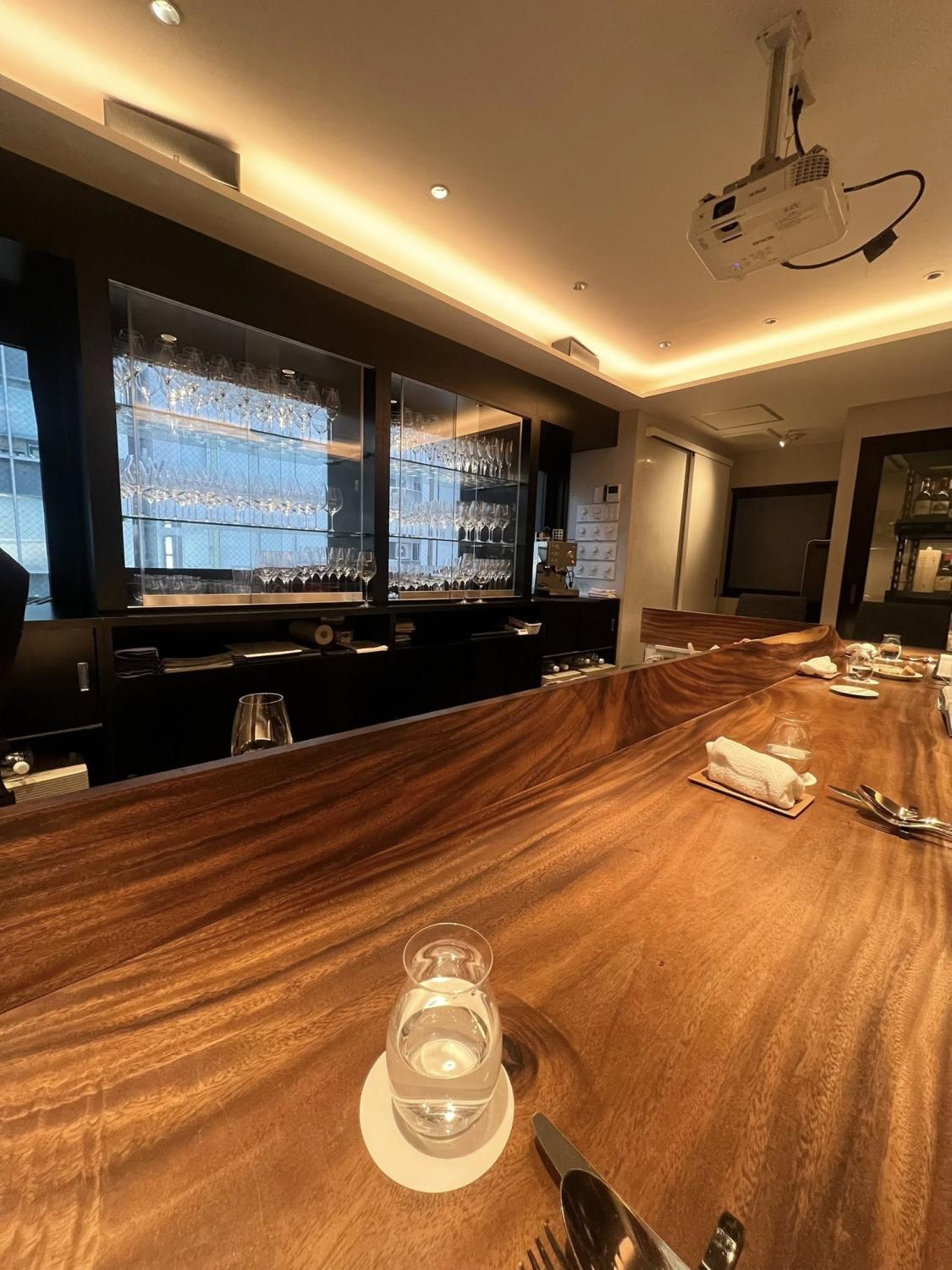 お席はL字型カウンター7席のみで、店内には高級ワインがずらり♡