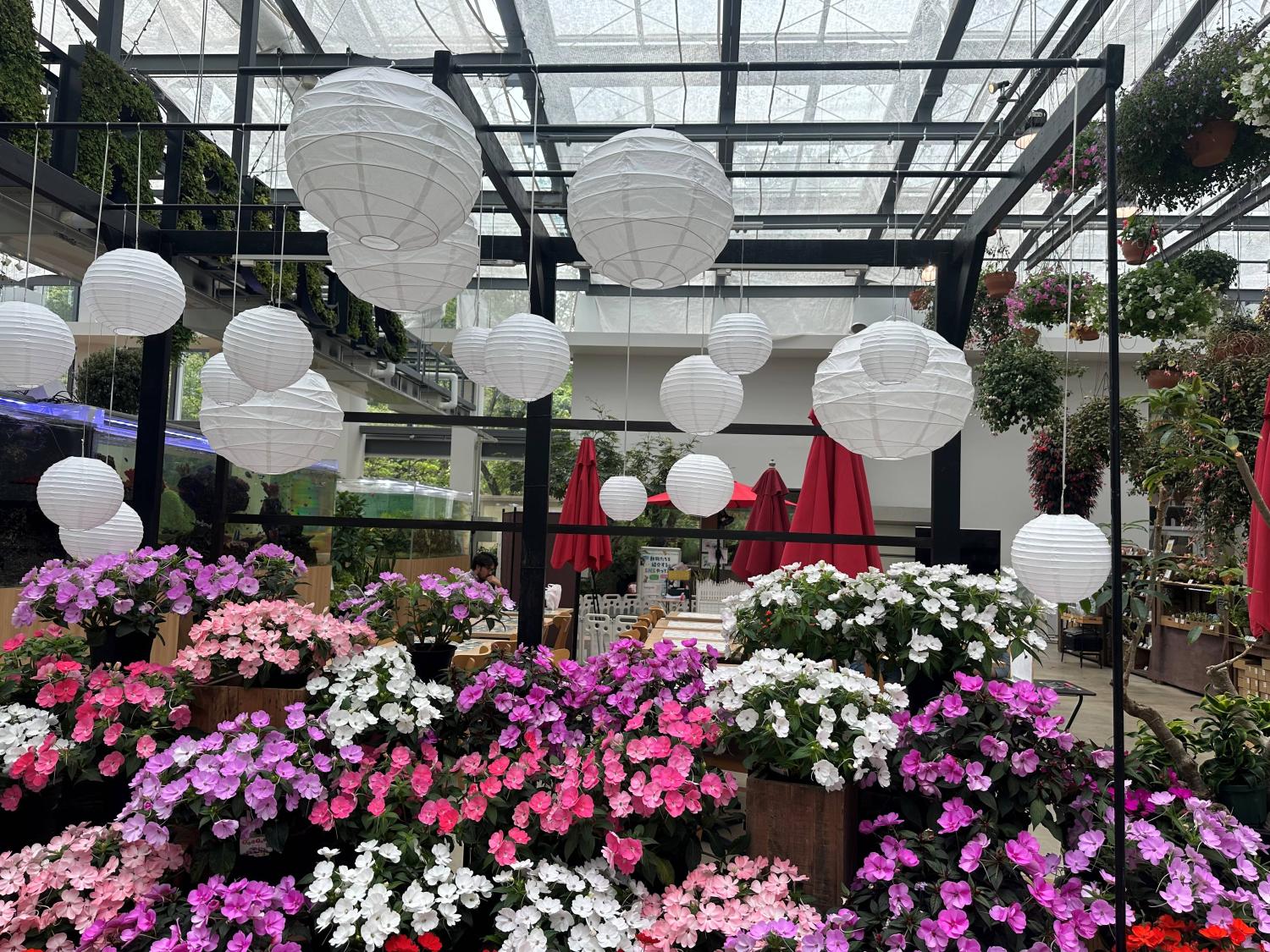 太陽がさんさんと降り注ぐ店内には、沢山のグリーン達が置かれ、ネイチャーな香りや熱帯魚が泳ぐアクアリウムもある癒しの空間。フォトスポットもあちこちにありました。
