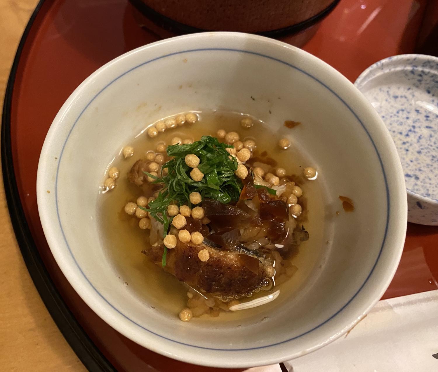 三膳目はつんと気高く香る出汁を注ぎ、さらさらといただくお茶漬け。鰻の旨味と出汁の香りが重なり、格別の一杯。