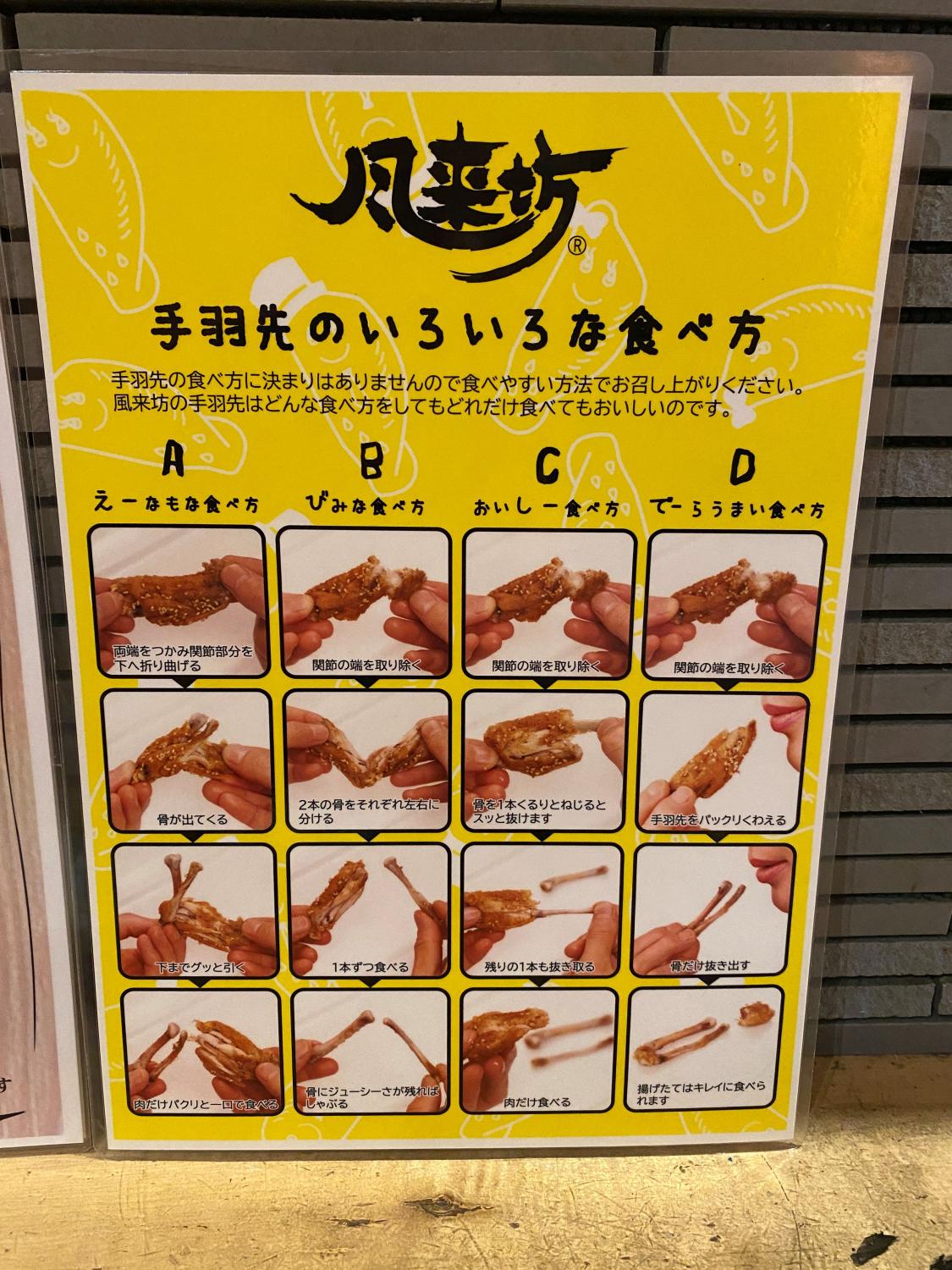 さらにユニークなのが「手羽先の食べ方指南」。骨をスッと抜いてきれいに食べられる方法が図解されていて、初心者でも安心です。実際に挑戦してみると意外にうまくできて、ちょっとした達成感も味わえました。