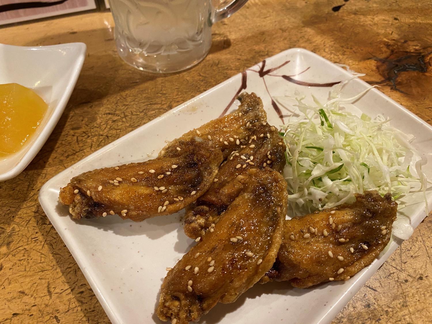 揚げたての手羽先は、皮はパリッと香ばしく、甘辛いタレにピリッと効いたスパイスが絶妙。しかもそのスパイスの配合は複雑で奥深く、噛むほどに味わいが広がります。だからこそ何本食べても飽きが来ない。ビールやハイボールとの相性も抜群で、手もグラスも止まりません。