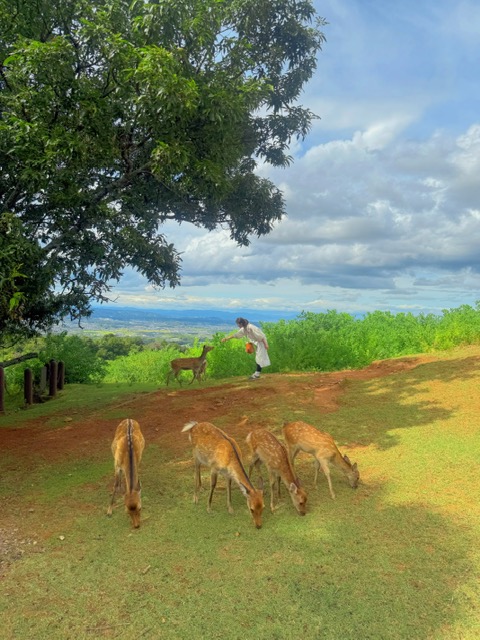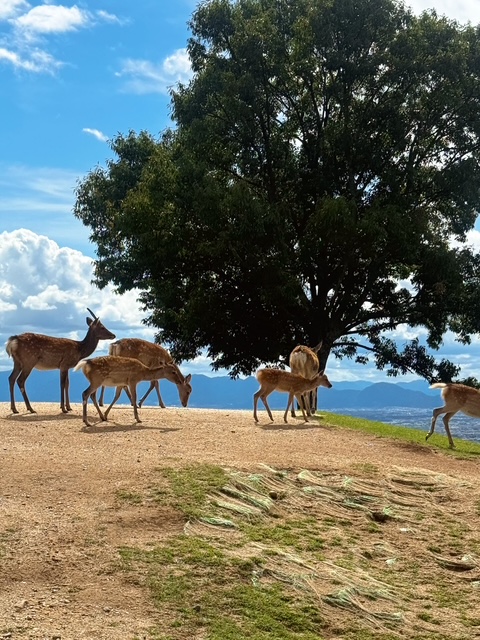 天気も良くて、山頂からの景色を見ながら可愛い鹿さん達と戯れます。