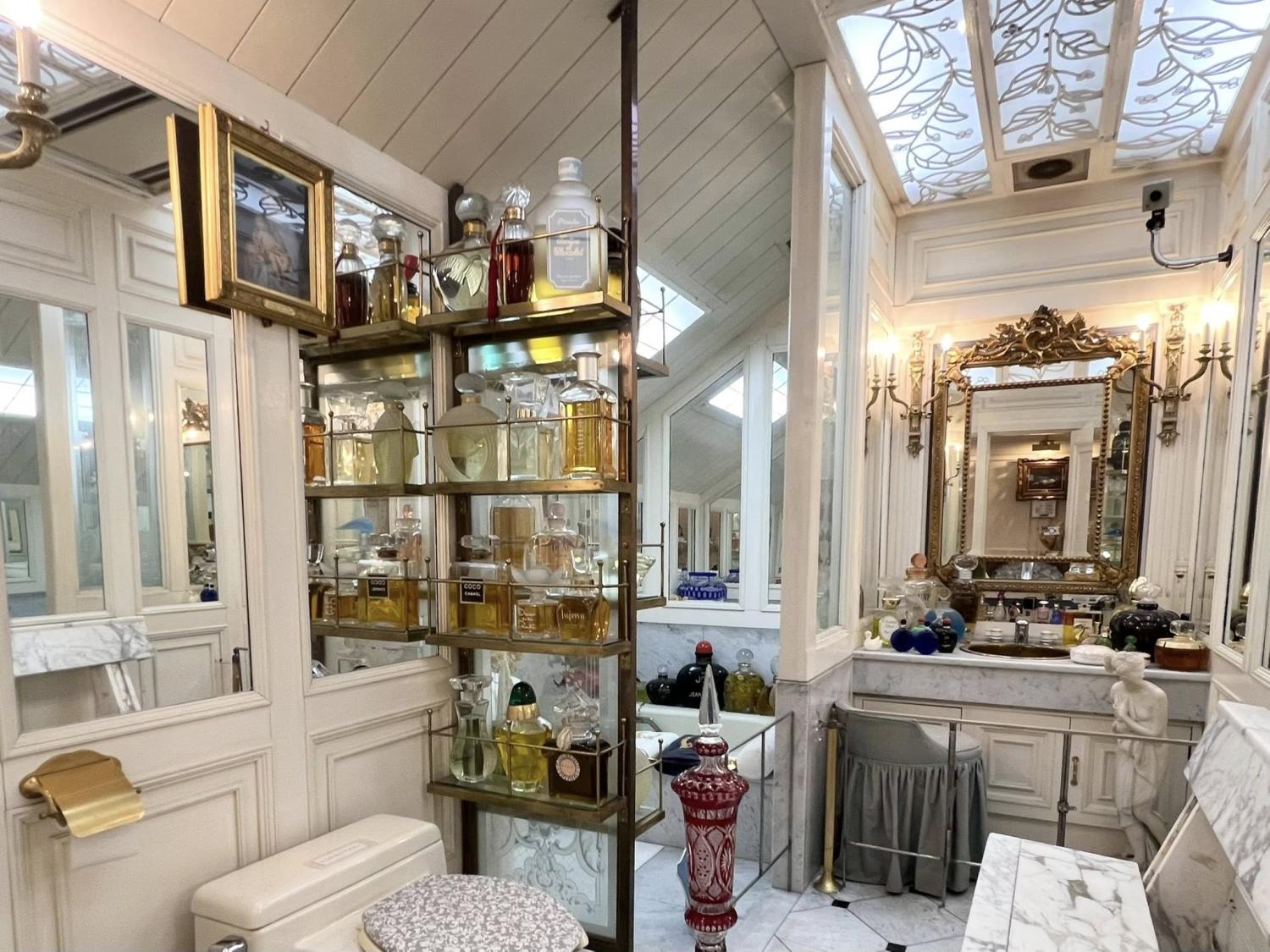 階段を上がると、ウィスキー瓶くらいの香水が山ほどあるパウダールーム。