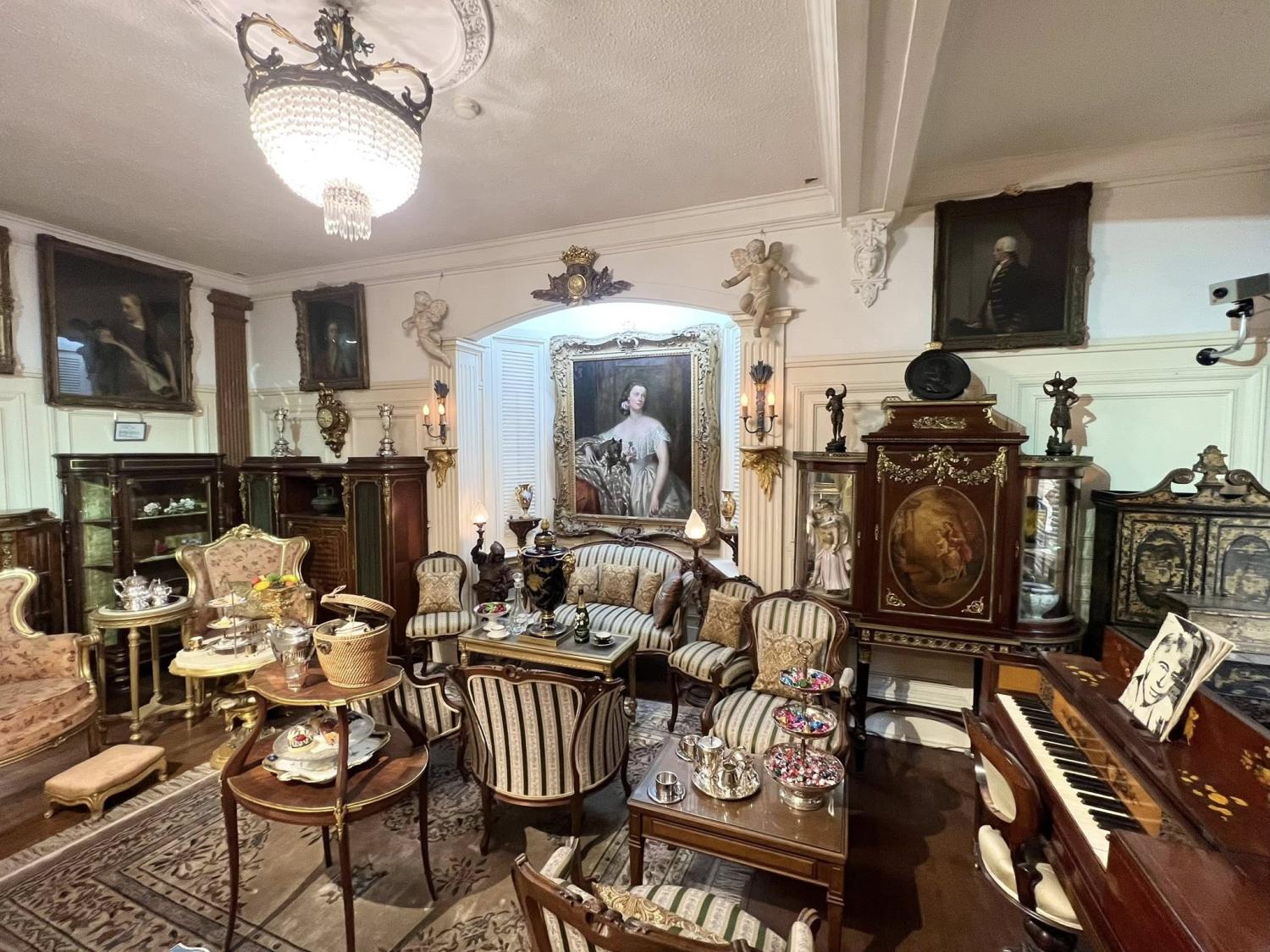 素敵なアンティークの品々が並ぶ豪華な空間のリビングルーム。