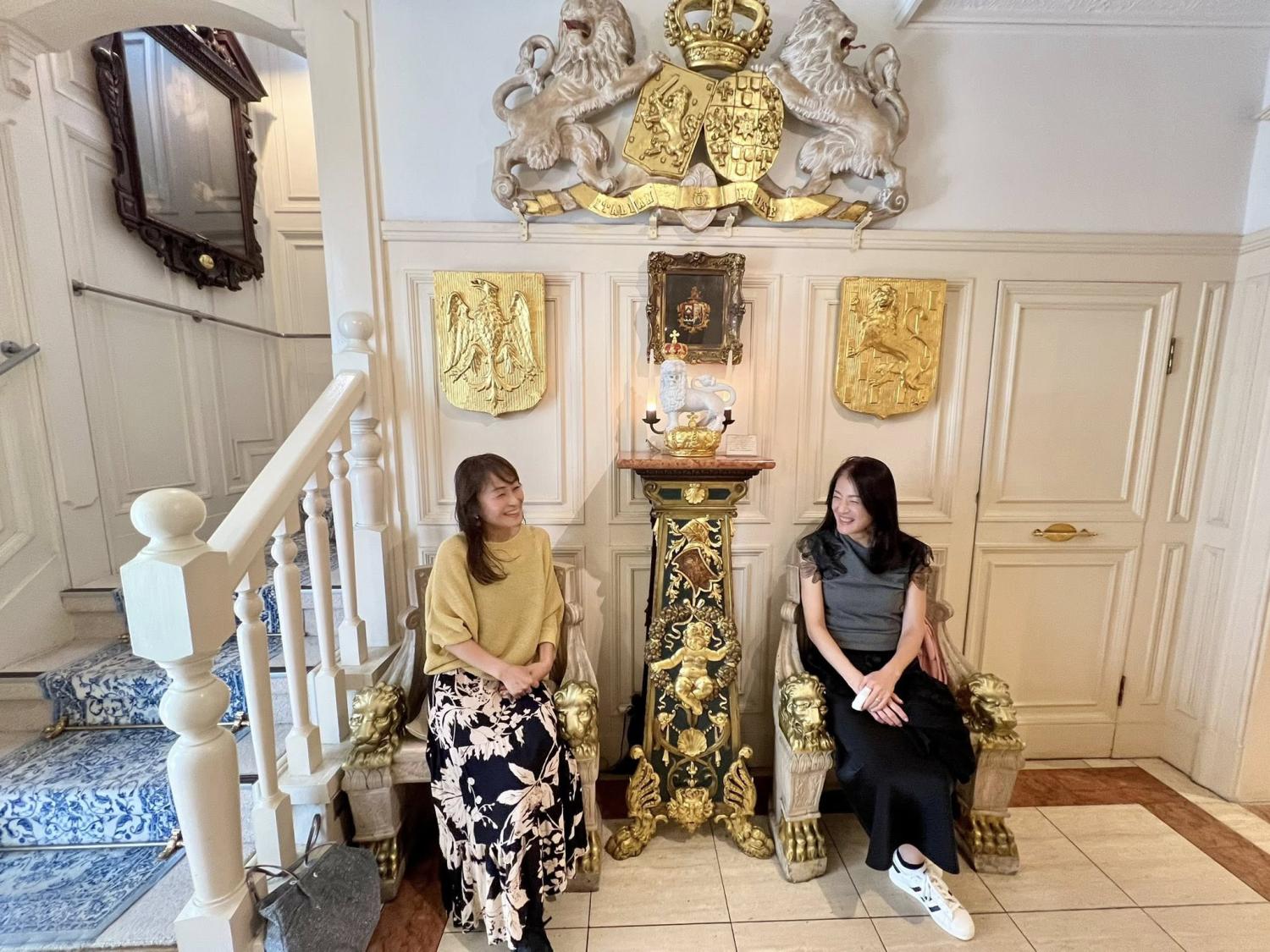 素敵な玄関に心躍り、すぐさま玄関の椅子にご一緒したおでかけ女史組OGのNORIKOさんと 笑