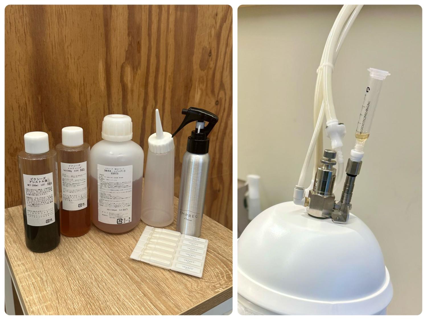 シャンプー後すぐに使う皮脂を柔らかくするメルティング剤や、装置のキャップをつける前に頭皮に塗布するヒト幹細胞培養液&エクソソームを含有した美容液などがあります。