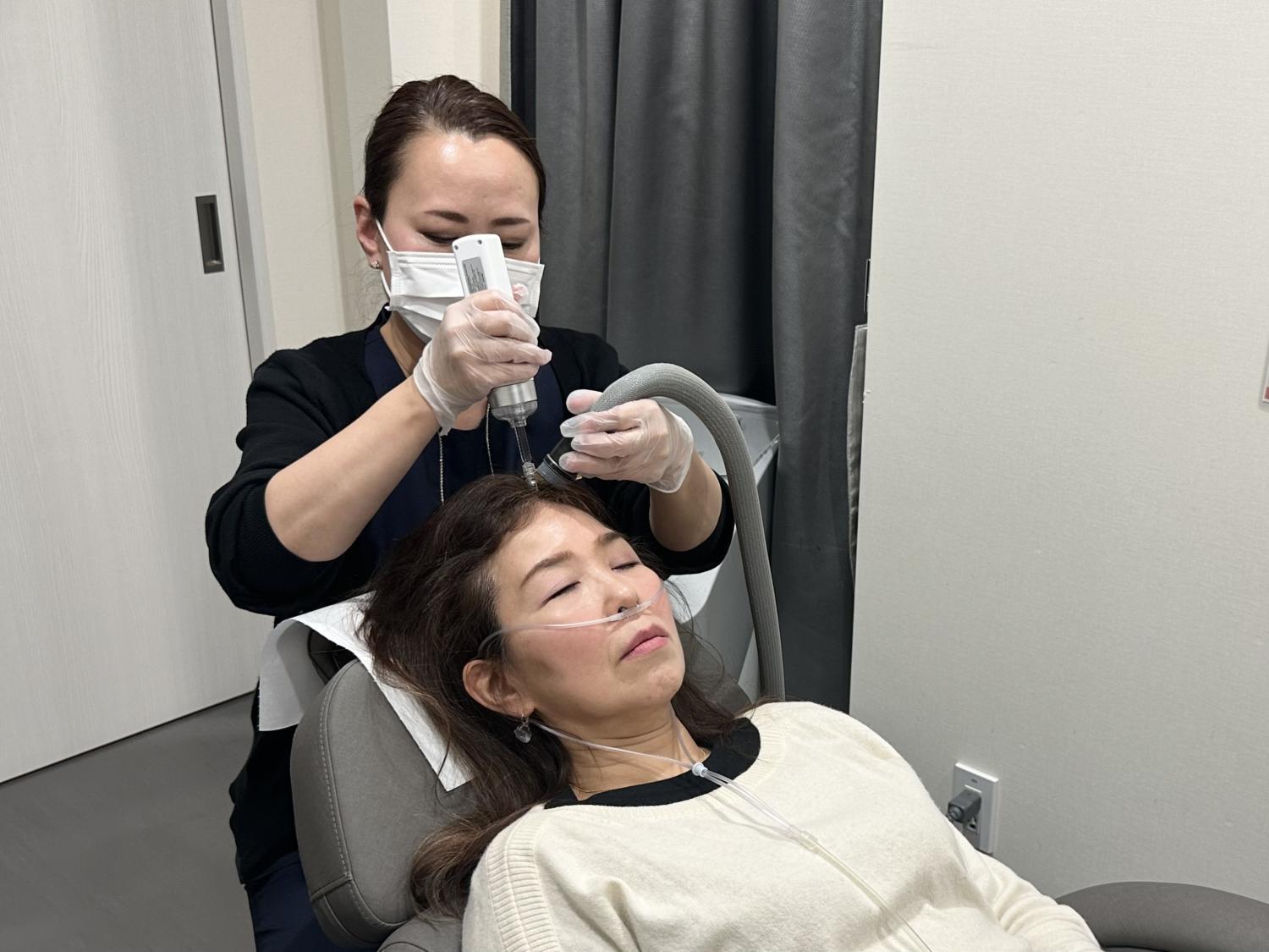 そして、1つ前の治療中の画像で、私の鼻に取り付けられたチューブに気づいた方もいるかもしれませんね。これは追加オプションの「メディカル水素吸入」です(画像右)。