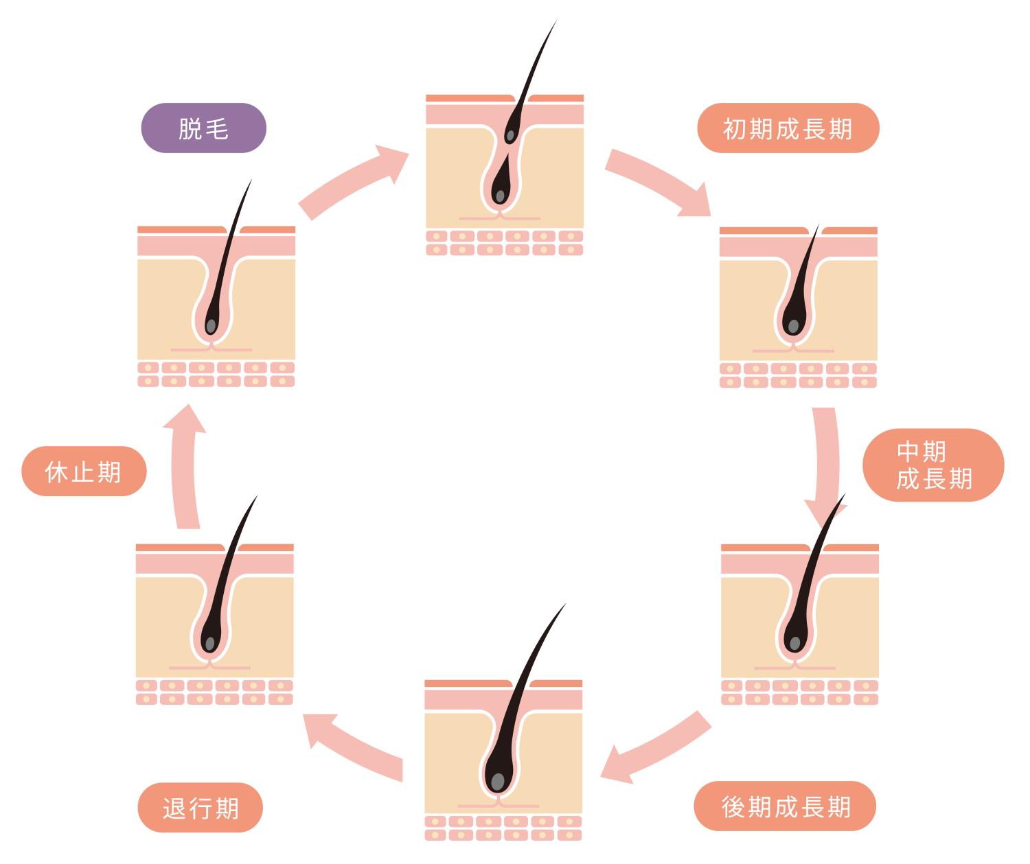 毛周期(ヘアサイクル)では、髪が作られ、育つのは「成長期」。