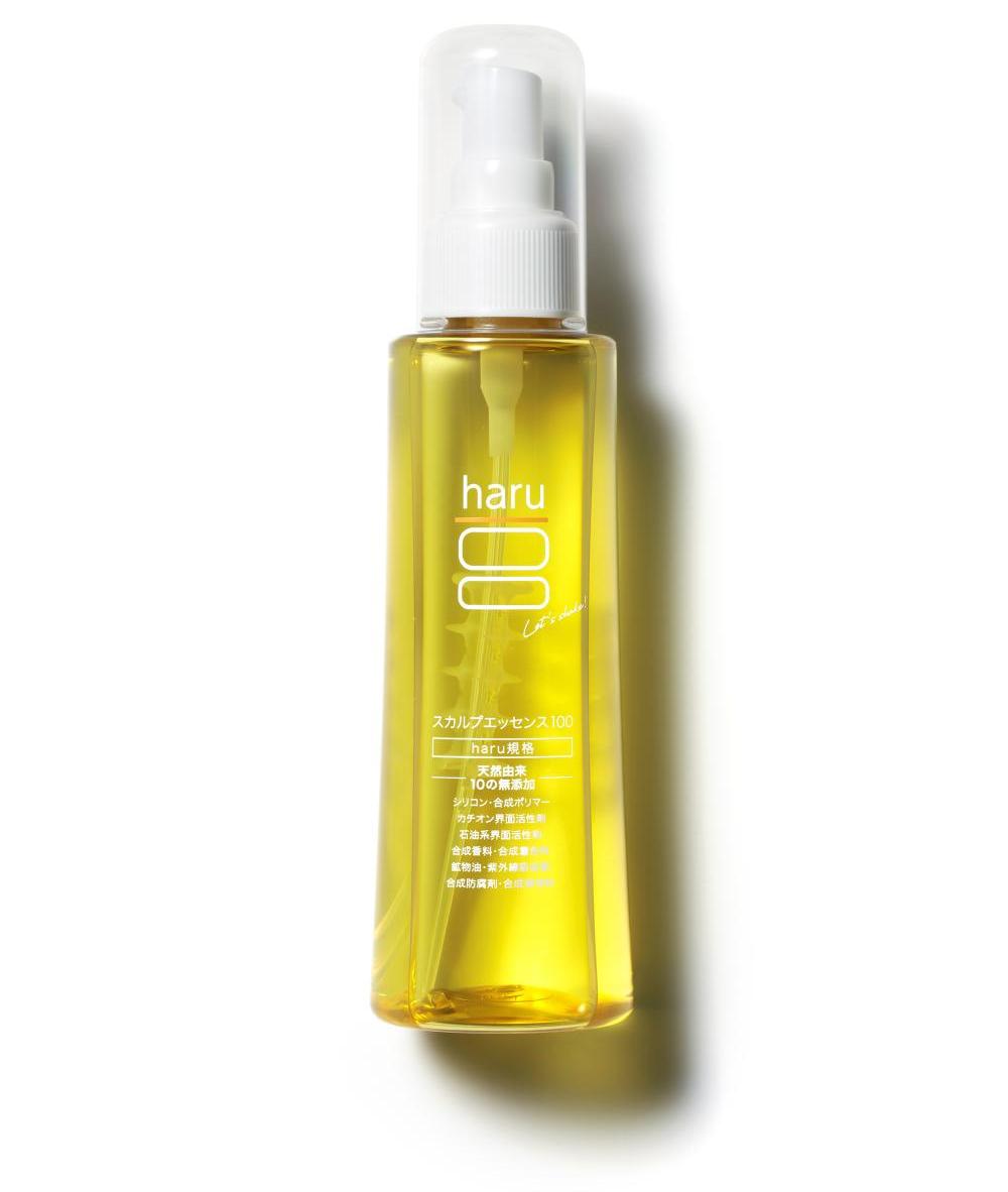 haruは、髪をはじめとした女性の悩みを解決することを目指した、100%天然由来・10の無添加(※)が特徴のライフケアブランドです。育毛エッセンス「スカルプエッセンス100」(販売名:haru 薬用 スカルプエッセンス)も100%天然由来。