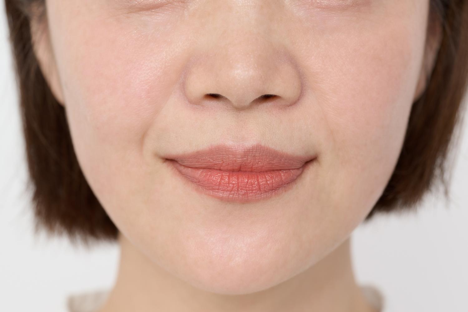 リップメイク前と比べてみると、上唇がキュッと締まった感じになっているのがわかります。