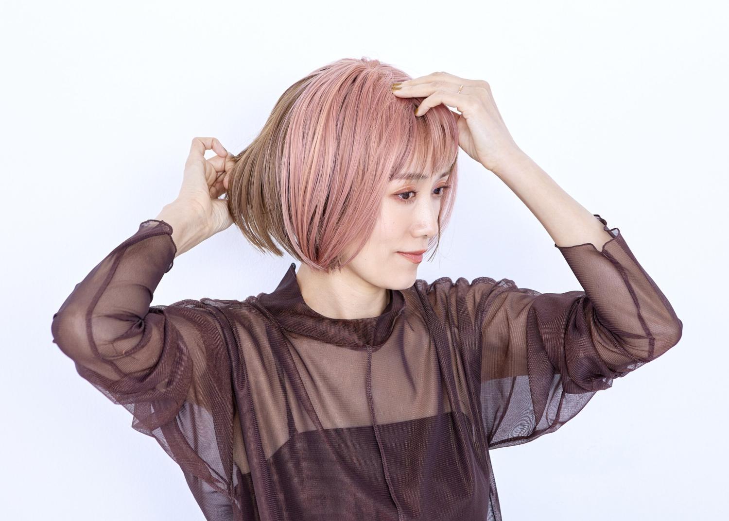 短いボブスタイルのウィッグなら、このくらい思い切った「映えカラー」でもチャレンジしやすそうです。