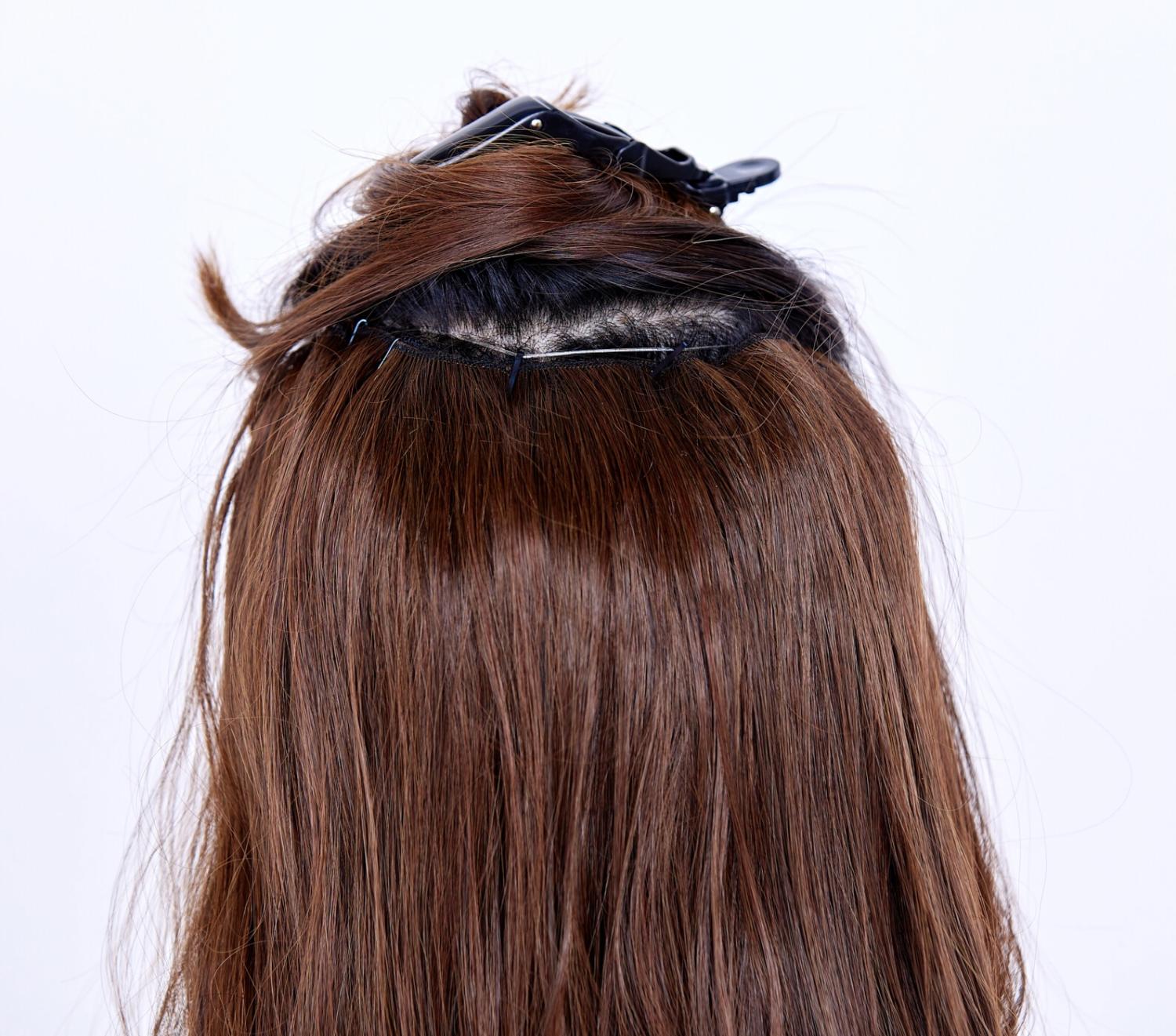 自毛、ヘアピース、エクステをヘアアイロンで一緒に巻く