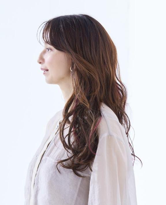 橋場さんの自毛と、着用したヘアピースやエクステを一緒に巻くことで、自毛との境目が目立たず、ナチュラルなウエーブになります。