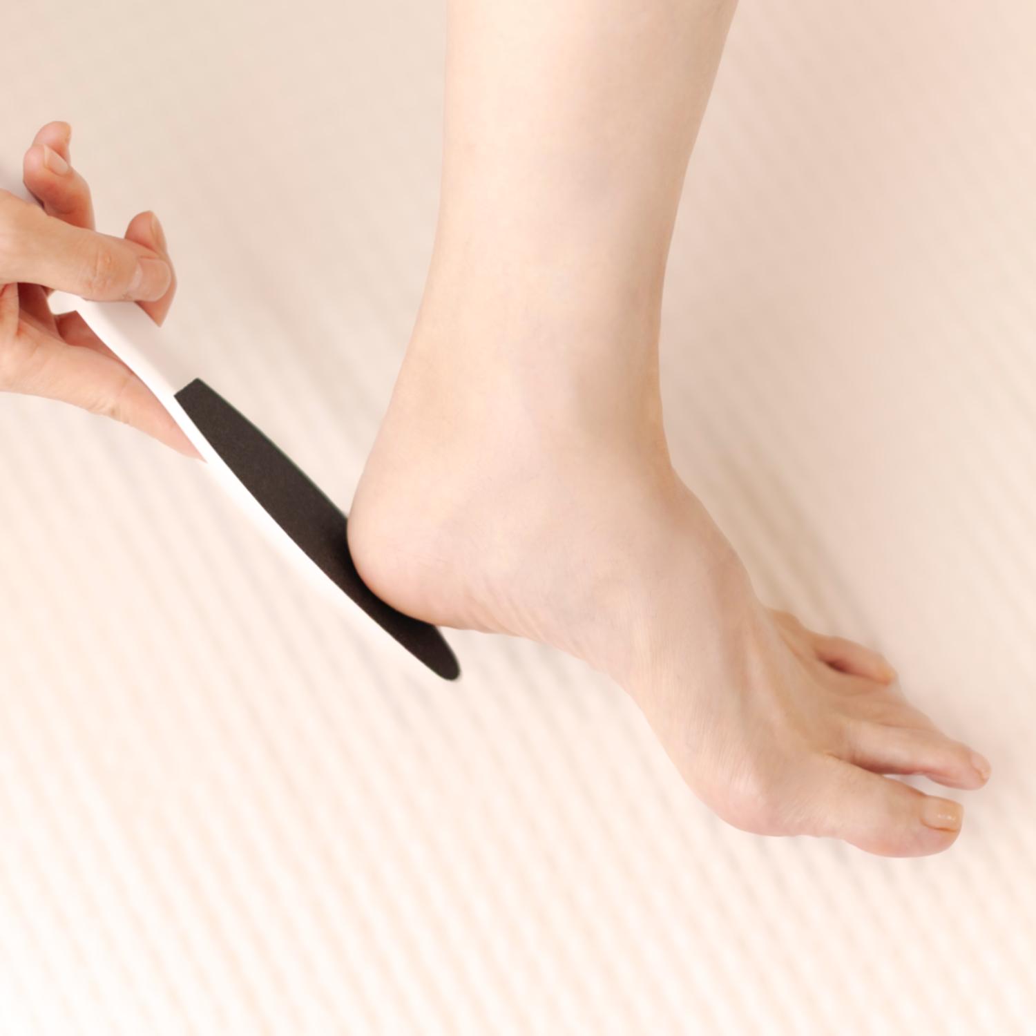 お風呂などで角質が柔らかくなっているときに、軽い力で優しく円を描くようにして硬くなった角質を除去してください。