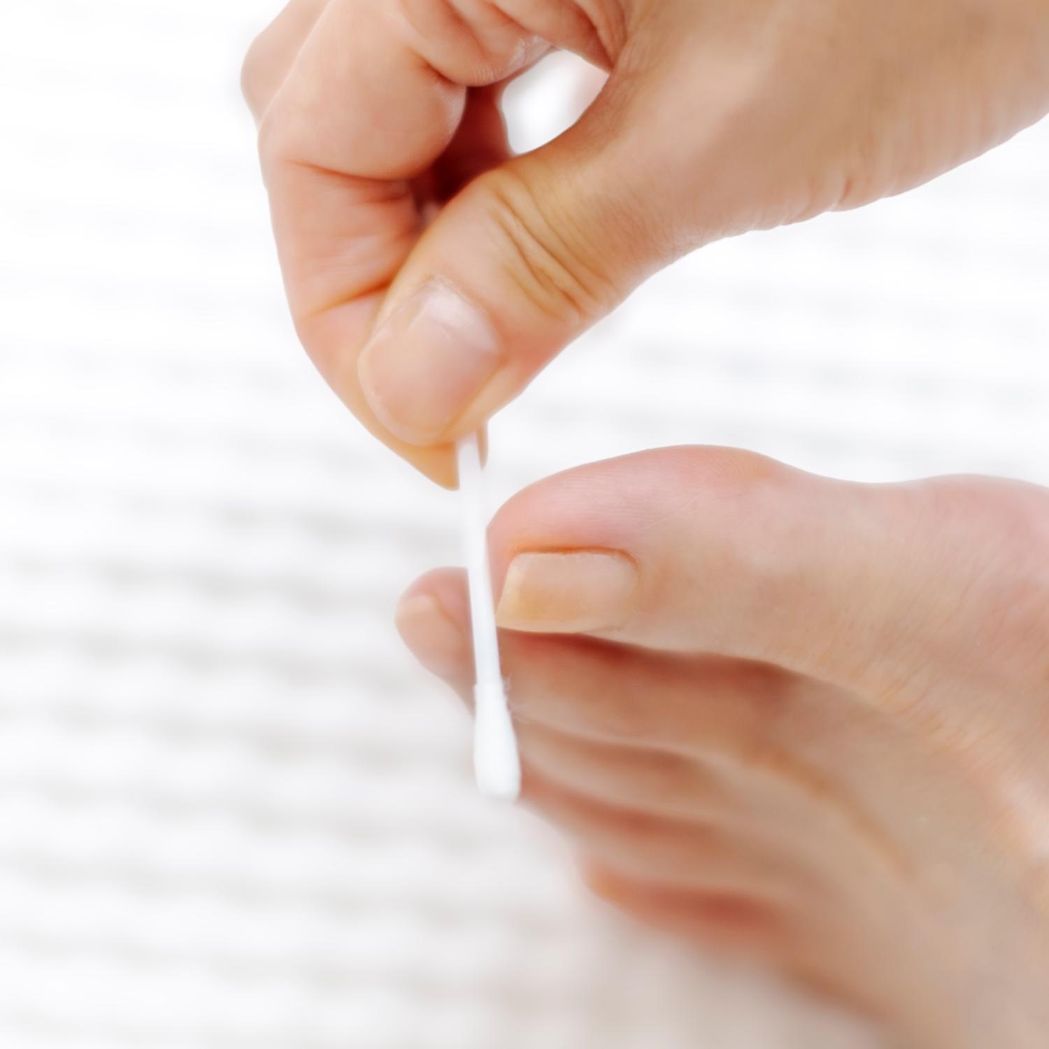 爪まわりの角質が気になる場合は、綿棒で除去します