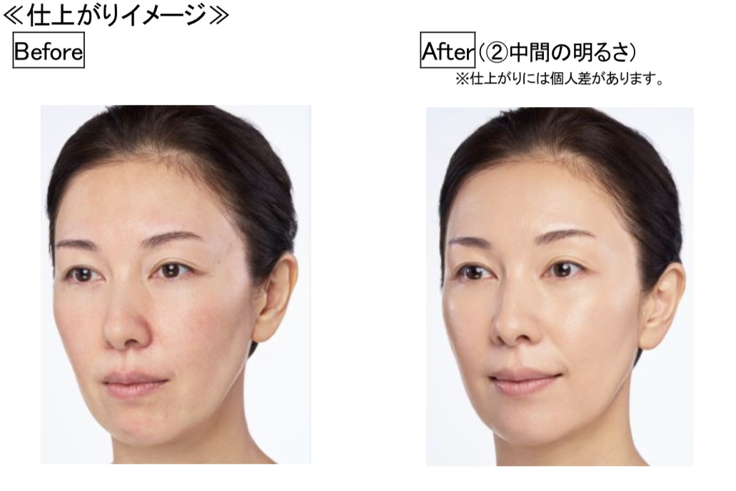 上は、「プリオール 薬用 リンクル美コルセットファンデーション」を使う前と、使ったあとの仕上がりのイメージです。